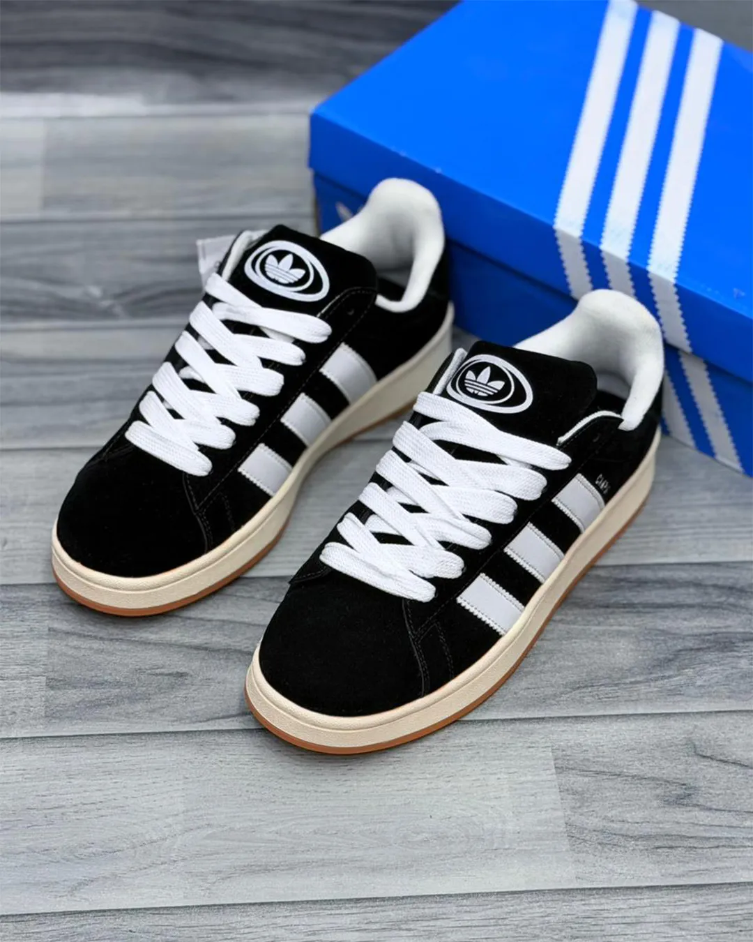 Step into timeless style with the Adidas Campus sneakers in the iconic black and white colorway. These retro-inspired kicks feature a premium black suede upper that delivers both durability and sophisticated street style. The signature white three-stripe branding runs along the sides, creating that instantly recognizable Adidas look that’s been a favorite for decades.