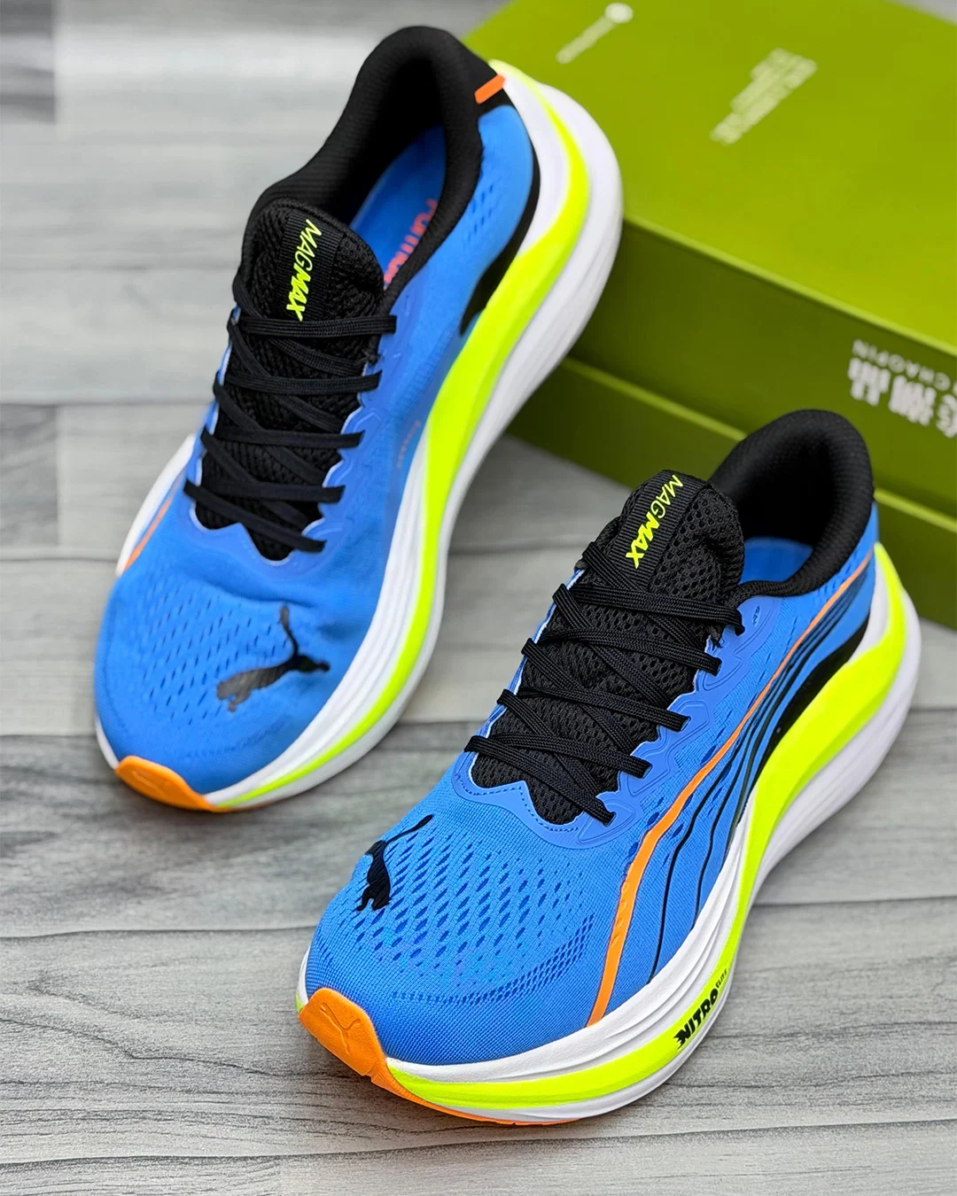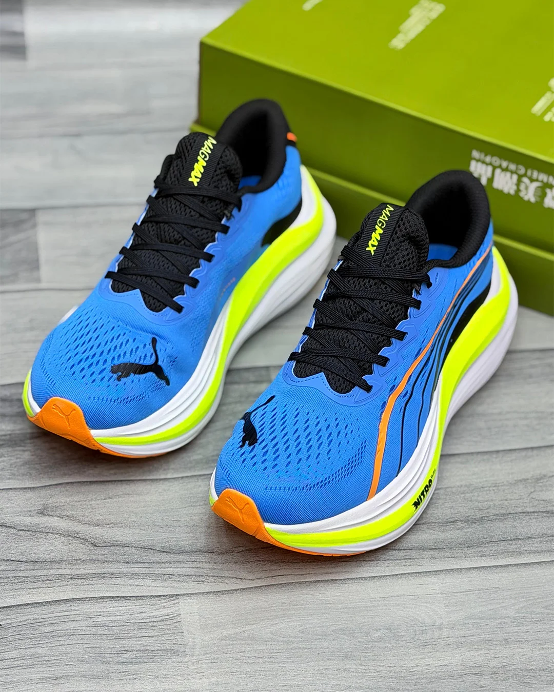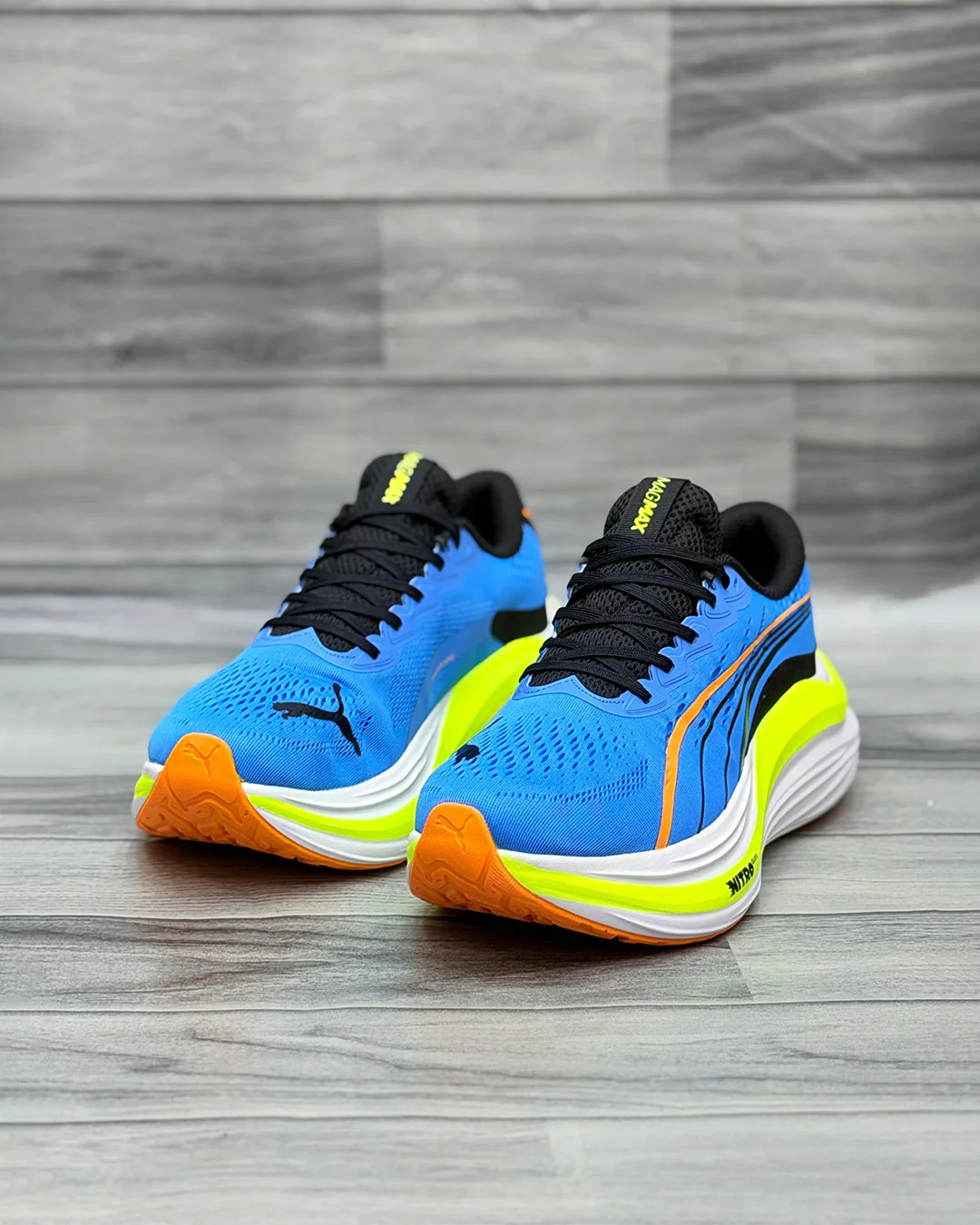 Unleash your true running potential with the Blue Nitro Runner Shoes engineered for athletes who demand speed endurance and all-day comfort With its bold blue upper accented by neon yellow and orange highlights this shoe doesn’t just perform it makes a statement every time you hit the track or the streets.